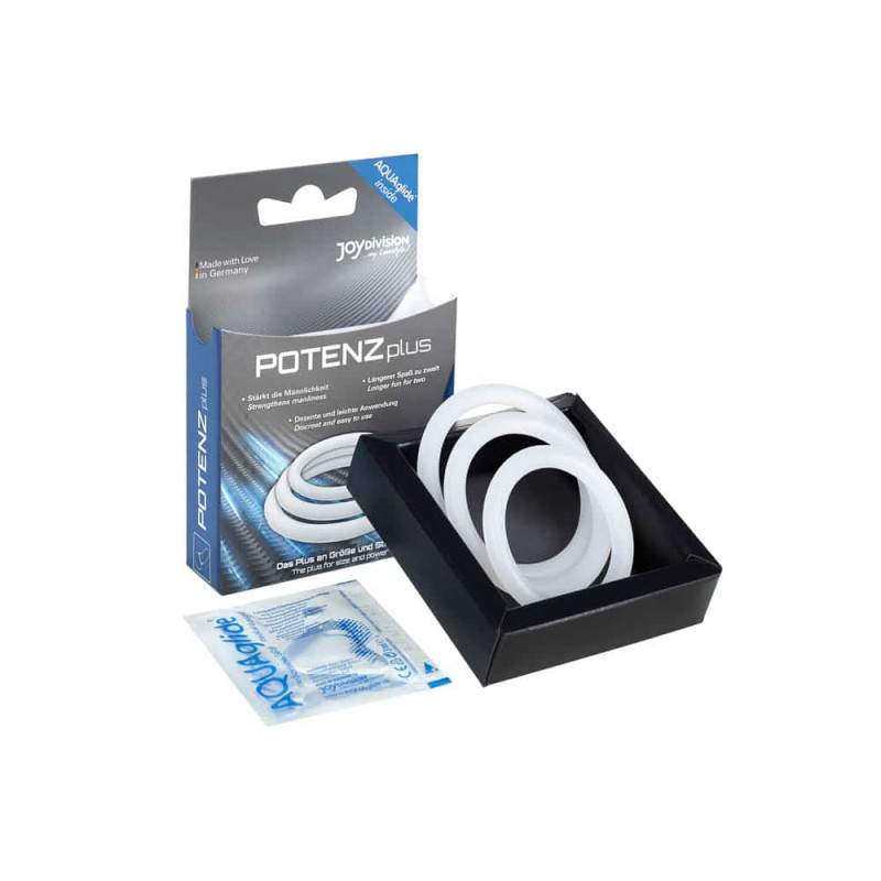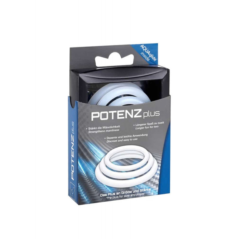 Tri prozirna prstena za učinkovitu podršku vašoj erekciji zahvaljujući učinku zagušenja krvi. 3,5 cm, 4 cm i 4,5 cm (fleksibilni). Materijal: medicinski silikon (dermatološki i klinički ispitan).